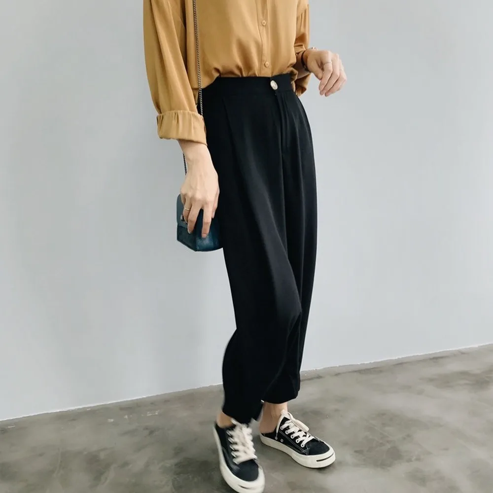 Ankle-Length Pants 2020 spring new style drape feeling wide leg pants solid color foot closing granny pants casual pants women look the best product that related to