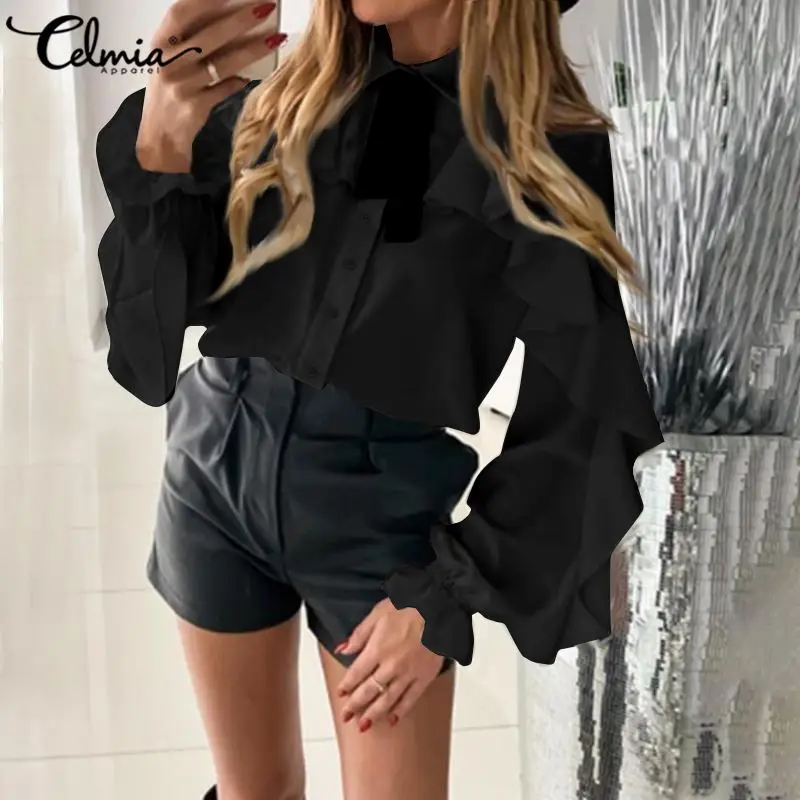 Celmia Autumn Women Ruffled Blouse 2020 Sexy Bow Tie Ladies Shirts Casual Turn-down Collar Long Sleeve Tunic Tops Buttons Blusas look the best product that related to