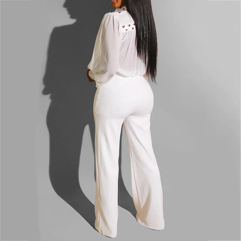 Autumn Winter Long Sleeve White Jumpsuit Elegant Lady Hollow out African Party Long Jumpsuit Wide Leg Office Wear Playsuit 2019 look the best product that related to